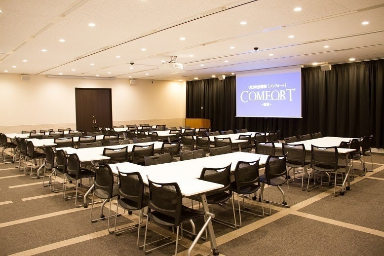 天井吊下型プロジェクター7500ルーメンの高輝度。LEDダウンライト完備。 ビル全体の換気システムに加え、大型空気清浄機を設置。 飛沫感染防止用パーテーション無料でご利用頂けます。(数量限定) ・会場専属コーディネーターが対応 ・高機能映像音響機器、ダウンライト照明完備 ・有線・無線LAN