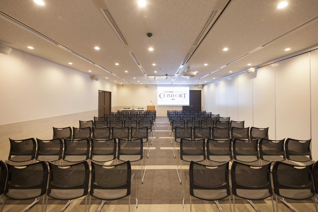 天井吊下型プロジェクター7500ルーメンの高輝度。LEDダウンライト完備。 ビル全体の換気システムに加え、大型空気清浄機を設置。 飛沫感染防止用パーテーション無料でご利用頂けます。(数量限定) ・会場専属コーディネーターが対応 ・高機能映像音響機器、ダウンライト照明完備 ・有線・無線LAN